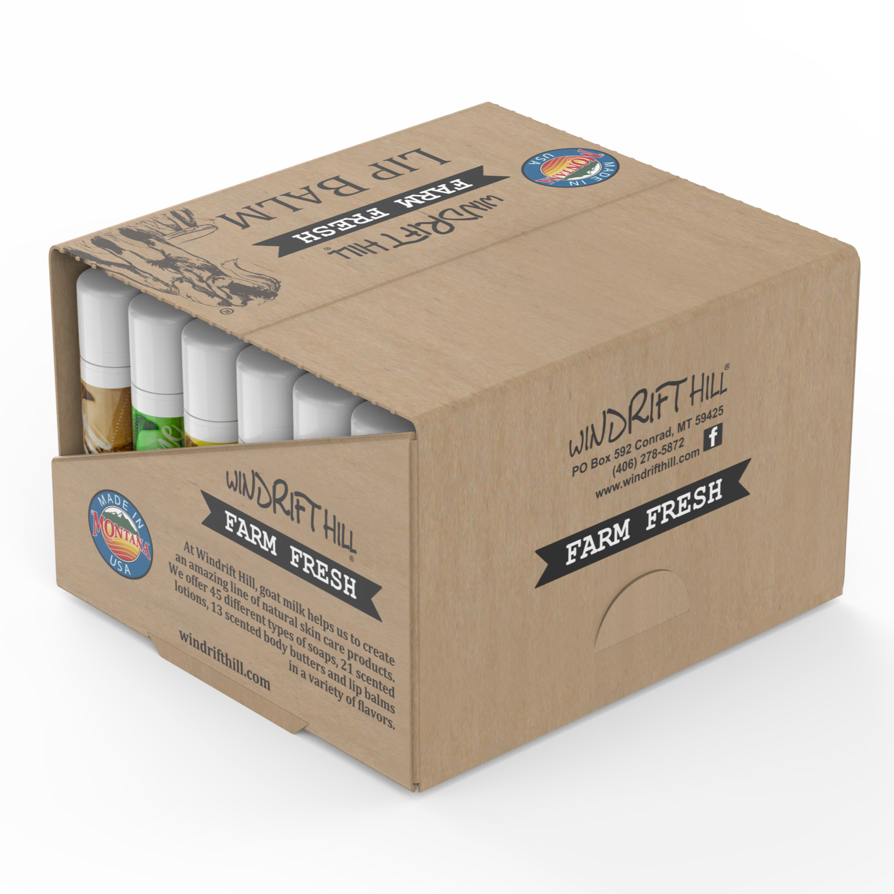 Our newly designed display is perfect for stores of all sizes. The compact display holds 36 lip balms, and you can choose the 6 flavors you would like to fill the display!