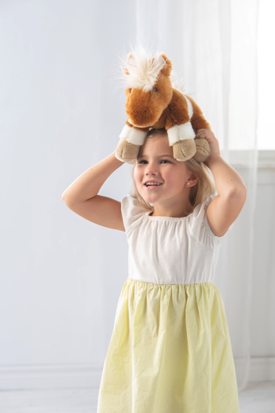 The Shetland Pony H15260 stuffed animal "Get ready to horse around with the Shetland Pony H15260, the perfect cuddly companion for all your adventures. This plush pal is not horsing around when it comes to bringing joy and laughter into your life. Don't settle for a boring old stuffed animal, add some fun and whimsy to your collection with this adorable and playful pony. With its soft fur and endearing expression, this toy is sure to become the mane attraction for kids and adults alike. Giddy up and bring home the Shetland Pony H15260 today!"