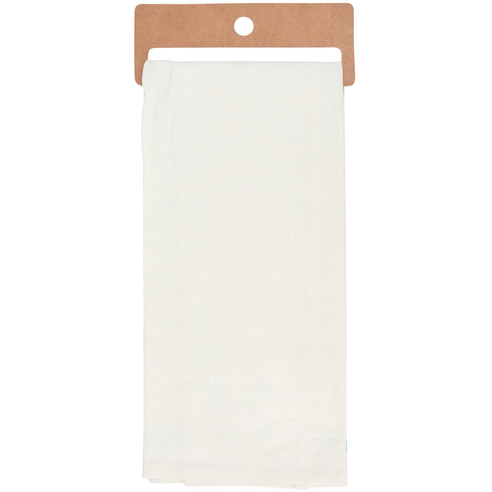 A cotton kitchen towel from our Western Collection displaying a hand illustrated design of a cowboy on a horse with a western inspired sentiment that reads "Work Hard Love Soft And Sip Your Whiskey Slow." Kitchen towel features a coordinating turquoise velvet ribbon along one edge. Our Work Hard kitchen towel is conveniently machine-washable for easy cleaning. Packaged on a cardboard hanger with hole to easily hang on rack. A western-themed kitchen accessory perfect for everyday use.